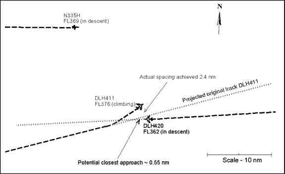 - The second controller misinterpreted the direction of flight of DLH420. Consequently, he was not aware that this aircraft was in conflict with DLH411.