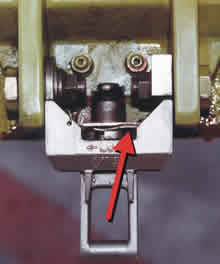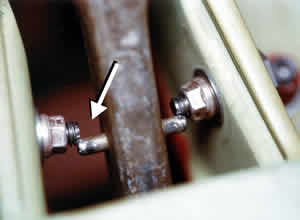 No specific damage was noted to the adjustment star retention springs of the occurrence aircraft. However, based on a brief survey of comparison aircraft that used similar components, several keeper mounting assemblies were observed, in service, with broken adjustment star retention springs. (See Figure 6 as one example.) In some of these cases, the top and the bottom springs on the same eye-bolt had failed, and there were two cases where more than one adjustment assembly was affected on the same cowl. A specific inspection procedure for the eye-bolt adjustment retention springs could not be found.