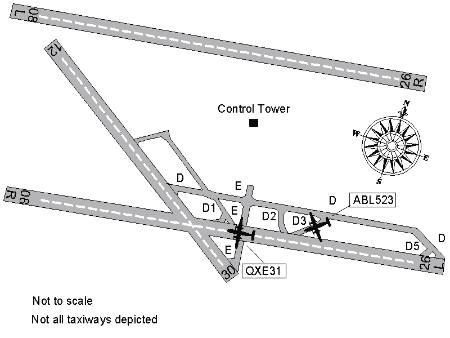 A pilot may request an intersection take-off when the full runway length is not needed. Such a request will normally be approved provided noise abatement procedures, traffic, and other conditions permit. QXE31 had requested departure from intersection E, and ABL523 had requested departure from intersection D3.