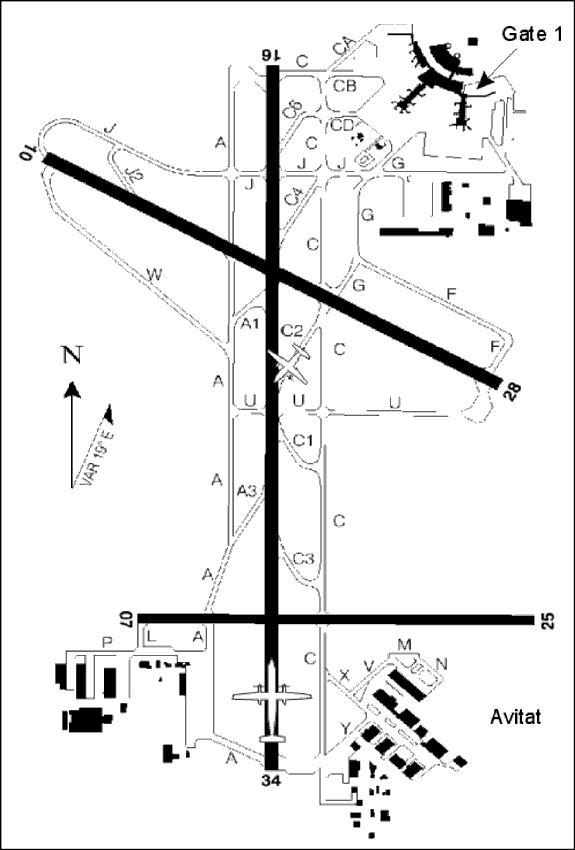 When runway 34 is in use, normal traffic flow from the main terminal to runway 34 or the south end of the airport is via taxiways Golf and Charlie. Aircraft landing on runway 34 use one of the short taxiways to exit the runway, and then are routed to the terminal via taxiway Charlie and Charlie Delta. When travelling south, taxiway Golf ends at its intersection with runway 10/28 and taxiway Charlie. Directly in line with taxiway Golf is the one-way taxiway Charlie 2 (see Appendix A). Taxiway Charlie 2 is one-way only, and is to be used as a runway exit by aircraft which have landed on runway 34. International do-not-enter signs are located at the east entrance to taxiway Charlie 2. The signs are illuminated, red and white, and made of reflective material. The area where taxiways Golf, Charlie, Charlie 2, and runway 10/28 converge was identified by some NAV CANADA and Calgary Airport Authority staff as being a known potential area of confusion, especially for crews not familiar with the airport layout. During the investigation, NAV CANADA and Calgary Airport Authority staff reported that there have been several incidents where aircraft instructed to taxi from Charlie 2 and Charlie northbound taxied from Charlie 2 onto Golf. Controllers also reported that they have provided direction to pilots who appear to be taxiing the wrong way but who, when reminded, can turn onto the correct taxiway without having to backtrack, due to the large paved area at the intersecting taxiways.