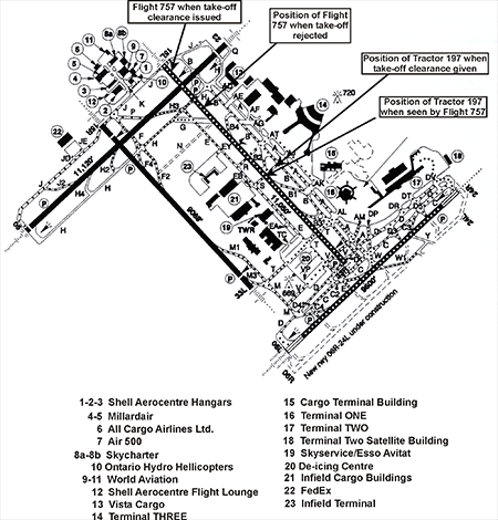 - The north ground controller inadvertently cleared Tractor 197, with an Airbus A310 aircraft in tow, across the active runway at the same time as Flight 757 was cleared for take-off by the north tower (on-job trainee) controller. The north ground controller clearance to Tractor 197 did not contain an explicit instruction to 'cross' the runway as required by the Air Traffic Control Manual of Operations (ATC MANOPS), nor did the north ground controller co-ordinate the movement of Tractor 197 with the north tower controller.