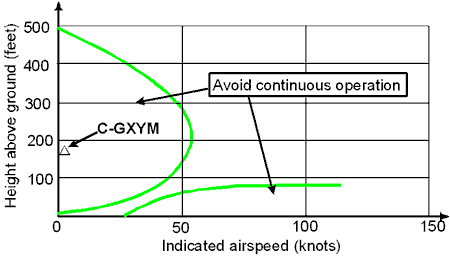 Section 4 (Performance) of the Transport Canada-approved rotorcraft flight manual (RFM) contains a speed-altitude graph outlining the in-flight parameters where pilots should avoid continuous operation (see Figure 1). The accident helicopter was used for repetitive heavy-lift (RHL) operations at about 165 feet above ground level and was being operated at a height and airspeed combination that had not been demonstrated to permit a successful emergency landing in the event of an engine power loss.