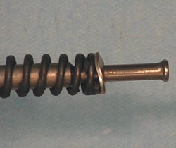 It was noted that the RH assembly could not be extended against the internal spring pre-load pressure, an action necessary to apply right rudder when airborne with the nosewheel in the normal centred and locked position. Dissection of both nosewheel steering tube assemblies revealed that the inner spring retainer washer on the end of the rod section in the RH assembly was saucer shaped and positioned on the opposite side of an annular crimp in the outer tube section when compared to the same part in the LH assembly (see Photo 1). From this position, it could not return to its normal position and operation. If this condition pre-existed, it would not prevent steering action on the ground, yet it would mechanically prevent the application of right rudder when the nose oleo extended at lift-off and engaged the nosewheel centring and locking cam. The left rudder would operate normally since the RH nosewheel steering tube assembly could still operate in the compression mode. Furthermore, in this condition, the automatic centring action of the nose gear as the aircraft lifted off would have resulted in the application of two to four degrees of left rudder deflection. This is due to the left hand rudder centring spring taking up the slack introduced in the right hand rudder cable by the right hand rudder pedal being moved aft of its normal position due to the shortened length of the RH nosewheel steering tube assembly.