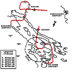 | 0703:00 | YYJ | Instructs RXX403 to fly 350° (Not received by RXX403) |