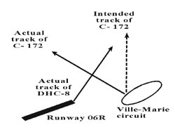 Less than two minutes before instructing the Cessna to maintain a northerly heading, the controller had cleared an Air Nova DHC-8 to take off from Dorval Runway 06R and turn left on a heading of 025° after take-off. The DHC-8, with 3 crew members and 16 passengers on board, was on a flight under instrument flight rules (IFR) from Dorval Airport to Québec / Jean-Lesage International Airport as Flight ARN 728.