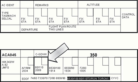 The NSiT program will often determine positions along an aircraft's route and calculate estimates for points that are not specified in the clearance. These points will correspond to the location where the aircraft's route crosses a sector boundary and are used for internal control purposes. These positions are printed in the left one or two boxes of the flight progress strips. No estimate is received or expected from the aircraft for these points. Controllers are generally able to discriminate between these internally generated positions and regular mandatory reporting positions because they are not normally part of the aircraft's route clearance and may have a format such as "abeam [a geographic location]" (for example, "A/YMM" means "abeam Fort McMurray"), as was the case for ACA845. The box second from the left may also contain a computer-generated fix. However, on ACA845's flight progress strip, this box contained the mandatory reporting point 60/110 because it was included in the route that had been entered in the NSiT.