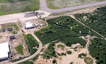A Canadian Helicopters Bell 212, serial number 30762, C-GDVG, was departing Goose Bay, Newfoundland and Labrador, with a sling load. The sling load was a military utility trailer, on a 100-foot long line plus 20-foot chokers, being picked up from the tarmac across from the company ramp. About halfway across the 210-foot wide tarmac, the aft end of the trailer struck the tarmac, leaving a gouge 10 feet long. The trailer then struck the top of another sling load, positioned on the opposite side of the tarmac from the departure point. The helicopter then veered left about 45 degrees as it cleared the airport perimeter fence. Approximately 150 feet beyond the fence, the trailer entered a stand of alders, 20 to 25 feet tall, and cut a swath 75 feet long before being lifted clear of the trees. Over the next approximately 300 feet, the trailer and/or trailer tow bar struck or dug into the ground at least three times. At some point after clearing the fence, the helicopter was observed rotating to the left. It was estimated that the helicopter completed two 360-degree rotations before striking the ground in an upright attitude, 120 feet beyond the trailer, with the long line still attached to the cargo hook. (See Appendix A). The helicopter crashed in a wooded area outside the airport perimeter fence, approximately 800 feet from the departure ramp. The pilot, who was the sole occupant, suffered serious but non life-threatening injuries. The helicopter was substantially damaged. There was no post impact fire.