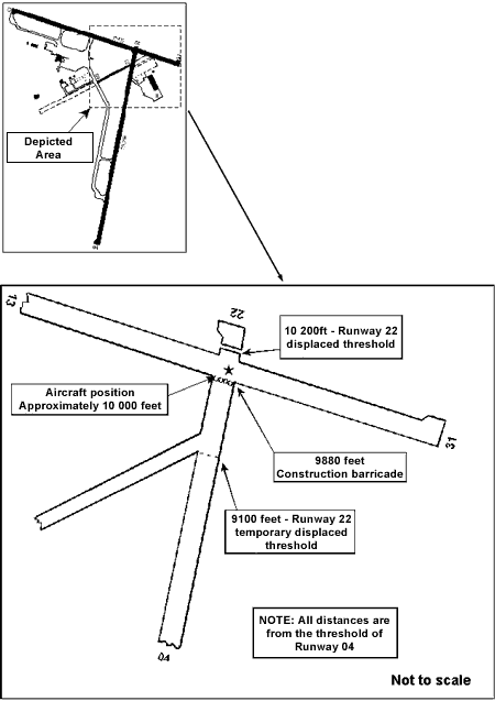 A runway analysis chart is used to calculate the maximum landing weight of the aircraft for a particular runway. The chart takes into account wind and runway surface conditions and is based on the aircraft touching down at the calculated landing speed. The runway analysis chart used by the crew indicated a 1020 feet runway length reduction, leaving a usable runway length of 9180 feet. It should actually have reflected information from a published NOTAM indicating that the threshold of Runway 22 had been relocated 1100 feet (from 10 200 feet to 9100 feet), leaving a landing distance available for Runway 04 of 9100 feet.