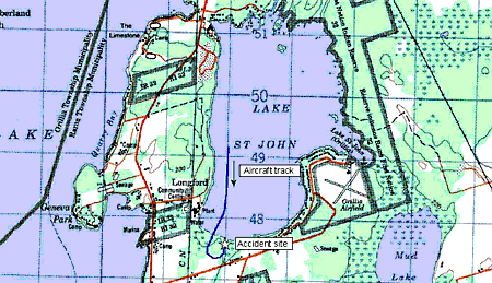 Lake St. John is approximately 3.4 kilometres long and 2 kilometres wide and is oriented in a north/south direction (see Appendix A). Orillia Aviation Limited's float plane base is located on a bay on the south-eastern side of the lake. At the south end of the lake, where the occurrence took place, there is approximately 300 to 500 metres of swampy shoreline extending south to a tree line. The tree line marks the beginning of a forested area, with trees 20 to 30 feet tall.