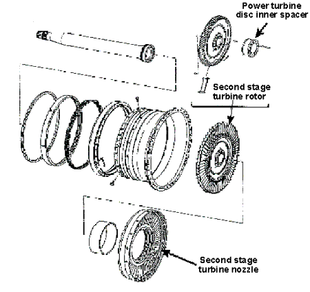 - The engine failed as the result of the second-stage nozzle failing and coming into contact with the third-stage turbine.