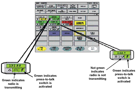 The VSCS is the primary interface for controllers to access the radios and landlines. The VSCS CCP is a display module (see Figure 1) located at each control position. The CCP is a touch sensitive screen which displays all the air/ground frequencies and landlines available to controllers. Each frequency is displayed separately on the screen by a rectangular icon. Different sections of the frequency icon show green depending on what the controller is doing: receiving, transmitting or has pressed the 'press to talk' switch but no transmission occurs (this indicates that there is a fault).