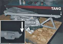 It was determined that the folding, cabin utility seat, occupied by the survivor, failed in overload. Further examination revealed that the tangs (Photo 3) at the bottom of the seat legs, which are inserted into the floor pick-up plate for seat security, were facing rearward. A de Havilland Alert Service Bulletin (A3/49 dated 19 July 1991) called for an inspection of the tangs to verify they are facing forward. In this occurrence the impact was of sufficient force that the seat would have failed even if the tangs had been installed correctly.