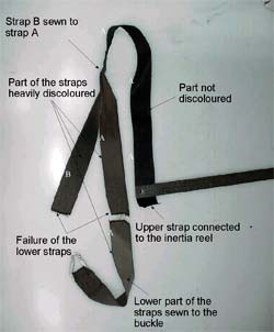 The whitening of the lower shoulder straps was caused by ultraviolet rays from the sun. The upper part of the shoulder straps, which was less exposed to sunlight because it was rolled up on the inertia reel, was practically not faded. Since the lower parts of the straps failed at 600 pounds of tension and the upper portion failed at 1500 pounds, it is reasonable to conclude that the degree of weakening of the straps corresponded to the duration of their exposure to sunlight. Moreover, since the upper portion of the strap, although less exposed to sunlight, failed at 66 per cent of the limit required by standard TSO C22, it is reasonable to conclude that even a strap exhibiting no signs of discolouration may have sustained some ultraviolet degradation. Since their mechanical strength was reduced to about 26 per cent of their original strength, the lower shoulder straps failed before reaching the prescribed limit. Consequently, the pilot was subjected to greater deceleration forces than he should have sustained in the accident. The degree of discolouration of the lower shoulder straps was indicative of a degradation of their strength. However, since no signs of physical wear were found, the belts were considered to be in good condition on the aircraft maintenance and TC inspections. It appears therefore that the absence of specific evaluation criteria with regard to the ultraviolet degradation of the belts contributed to the return to service of seat belts that no longer met regulatory requirements.
