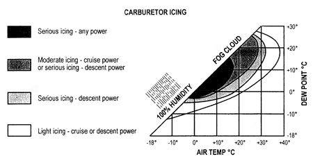 According to the A.I.P. Canada,Footnote 2 the temperature and dew point during the accident flight were conducive to serious icing effects at any engine power setting (see Figure 1). Carburetor icing may occur at any power setting, but is more likely at low power settings. It was not possible to determine if the carburetor heat was applied during the practice glide procedure or during the subsequent flight manoeuvres.