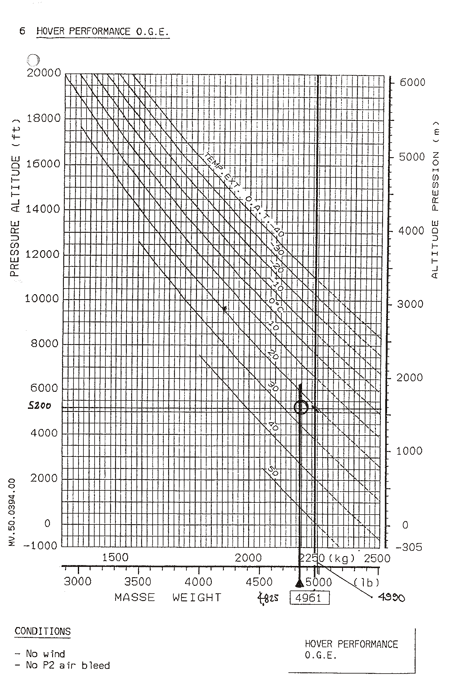 Using the HOGE curves (see Appendix A), assuming an outside air temperature of 20°C, a pressure altitude of 5200 feet, and a gross weight of 4825 pounds, at the second take-off attempt the helicopter was approximately 150 pounds less than the maximum weight permitted for those conditions. As ambient air temperature increased to 25°C, this margin would have been progressively eroded to zero. The actual performance of the helicopter would also have been affected by several other factors, including wind and wind gusts, pilot handling techniques, and engine and rotor system efficiency.