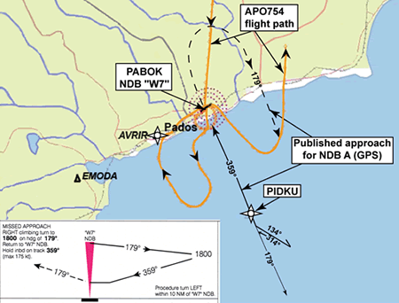 The following illustrates the aircraft's flight path compared with the published NDB A (GPS) approach path.