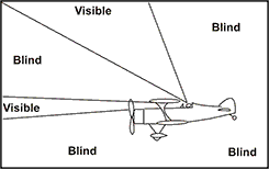 Both biplanes were highly manoeuvrable with ample power for the planned display. All aircraft have design limitations that restrict pilot visibility. Because the upper wing of biplanes is mounted ahead of and above the pilot, a significant additional blind spot is created in the pilot's field of vision (see Figure 1). The blind spot was reduced in the Waco because of the cockpit modification. However, because of the inherent manoeuvrability of the two aircraft, the display pilots could quickly move the nose or wings out of the way to locate the other performers. Additionally, the aircraft were equipped with smoke generators. The display pilots used the smoke to quickly acquire the position of other performers. Temporary loss of visual contact between performers is considered acceptable when manoeuvres are flown as scripted because the performers know when and where visual contact will be regained. Manoeuvres must be planned so this temporary loss of contact does not compromise safety.