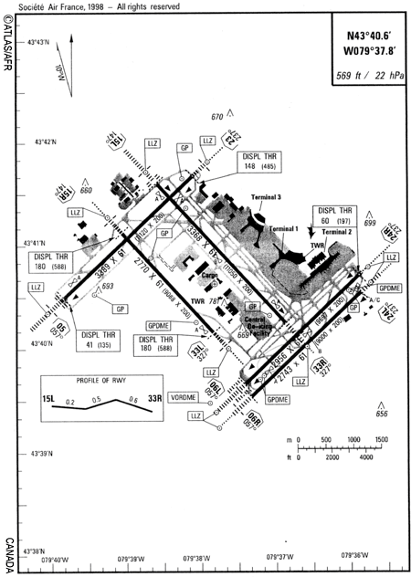 The Air France Airbus A340-313 aircraft (registration F-GLZQ, serial number 0289) departed Runway 09L at Paris-Foissy-Charles-de-Gaulle International Airport (LFPG),Footnote 1 France, at 1153 Coordinated Universal Time (UTC)Footnote 2 as Air France Flight 358 (AFR358) on a scheduled flight to the Toronto/Lester B. Pearson International Airport (CYYZ), Ontario, with 297 passengers and 12 crew members on board. Among their other pre-flight activities, the flight crew members obtained the weather forecast for their arrival, which included the possibility of thunderstorms. In anticipation of potential weather-related delays on arrival, an additional 3 metric tonnes (3000 kg) of fuel was uploaded to allow for an extra 23 minutes of holding time at Toronto.