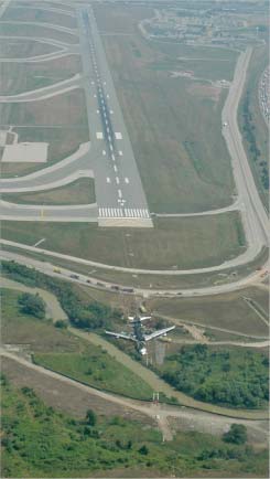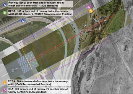 During the accident, there was no damage to the runway or blast pad at the exit end. Two runway end lights were destroyed as well as the last five bars of the Runway 06R approach lights (closest to the runway) (see Section 1.12, Wreckage and Impact Information).