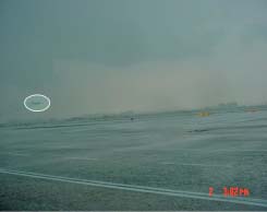 Weather conditions during the remainder of the approach ranged from visual meteorological conditions (VMC) to instrument meteorological conditions (IMC) with flight in very dark clouds, turbulence, and heavy rain. AFR358 had visual contact with the ground when the aircraft was 2 to 3 nm from the runway. At an altitude between 1000 and 1500 feet above ground level (agl), about half of the runway was visible and at times part or all of the ramp area was clearly visible. The runway was covered with water, producing a shiny, glass-like surface. There was lightning on both sides and at the far end of the runway. The aircraft's weather radar showed heavy precipitation, with a red area encroaching on the runway from the northwest and another south of the runway. The flight crew obtained wind speed and direction from the aircraft's navigation display (ND), which indicated that there was a 70° to 90° crosswind from the right at 15 to 20 knots. The windshield wipers were turned on to SLOW at 4 nm from the runway and stayed on for the remainder of the flight.
