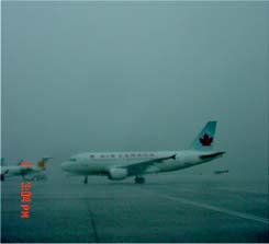 At 1933, the ATIS information broadcast indicated that CYYZ had reduced visibility in thunderstorms and heavy rain, and rapidly changing weather conditions; Runway 24L was the expected runway. Also, AFR358 received METARs via the ACARS for KCLE, CYOW, and KIAG. The decision was then made to use CYOW as the alternate, with six minutes of holding fuel available at Toronto.