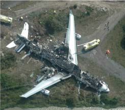 As the flight landed, three or four bright orange flashes were observed from the control tower through the heavy rain. The tower supervisor was immediately advised and the crash alarm was triggered. The "1 Alpha" system alerts the emergency response agencies on and off the airport that an on-airport crash has occurred, and it initiates the complete mobilization of all available fire and rescue services.
