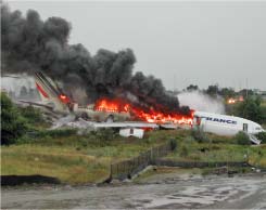 The aircraft was substantially damaged during the overrun, and was subsequently destroyed by the post-crash fire.
