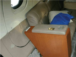 A cabinet that served as an armrest for the side seat was partially blocking the emergency exit (see Photo 1). The armrest/cabinet is connected to the seat by means of a rail along which it slides when it is necessary to remove it. According to Supplementary Type Certificate (STC) SA4147SW, a notice indicating that the armrest must be removed before each take off and landing must be displayed when the armrest is in position. At the time of the accident, the armrest/cabinet was in position, and the notice stated that the cabinet should be pulled forward in order for the emergency exit to be used.
