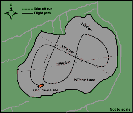 Wilcox Lake is a small lake in a residential area of Richmond Hill. The shoreline is surrounded by residential buildings, and beyond that, numerous subdivisions. The lake is popular for recreational activities such as swimming, boating, and canoeing; during the occurrence, it was being used extensively. The longest section of the lake is approximately 3500 feet in an east-west direction. The direction the aircraft was traveling during the final take-off run was northwest. The total distance available from the southeast shoreline to the northwest shoreline for the take-off run was about 2500 feet. (See Figure 1)