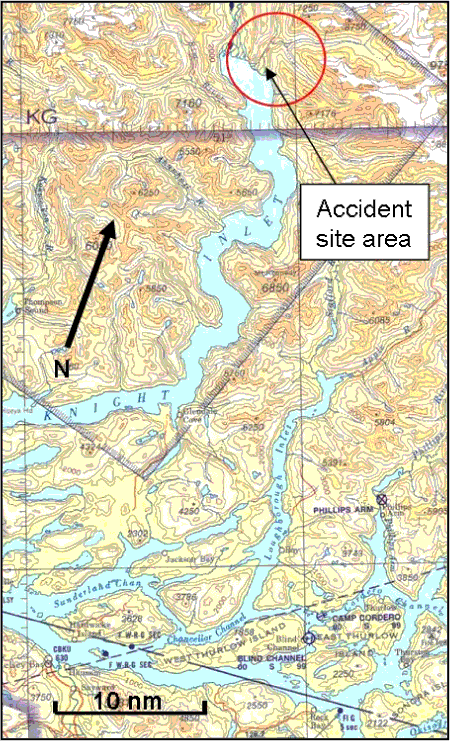 Earlier that day, after flying the two forest-harvesting engineers on a reconnaissance of the area, searching for potential pick-up sites, the helicopter pilot landed them at a drop-point on the ocean shoreline below the accident site. The engineers were evaluating the area for possible logging as they climbed up the steep gorge, eventually stopping at the site they had assessed as being suitable for helicopter pick-up. They then called the pilot to pick them up. The helicopter was parked at the base camp about two nautical miles (nm) away. The pilot took off for their location and searched for them while remaining in radio contact. Once the pilot located the passengers and the pick-up site, he assessed the site as suitable and flew to the touchdown zone they had prepared. The pilot had not previously landed at the landing site (see Appendix A).