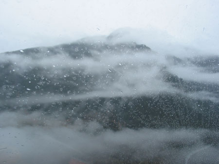 An additional restriction to vision for a Bell 206 pilot occurs in rain because the helicopter is not equipped with windshield wipers. When the helicopter is in forward flight, rain on the windshield runs off with a small amount of beading. However, at low forward speeds, and particularly in the hover, the airflow over the windshield is reduced and water can accumulate and cause significant restriction to visibility. Photo 4 shows the forward visibility from a Bell 206 cockpit at low forward speed in moderate rain.