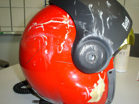 - The pilot's helmet and seat restraints and the front passenger seat restraints prevented more serious injury to the pilot and passenger.