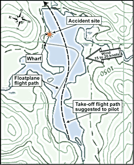 - The flight path towards the wharf put the aircraft into a tailwind facing a mountain slope that was too high for the floatplane's climbing performance.