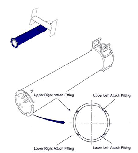 - The attach fitting at the upper right attachment point of the tail boom failed in fatigue. The transfer of loads to the adjacent aft ring structure resulted in the cascading failure of the remaining three tail boom attach fittings and separation of the tail boom from the fuselage.