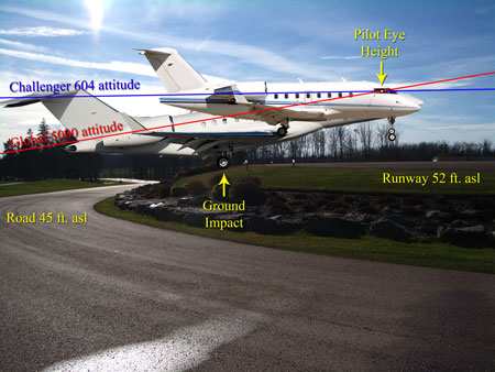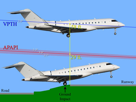 At 1434:25, the aircraft touched down 7 feet 6 inches short of Runway 33 and 18 inches below the surface of the runway (see Photo 1).