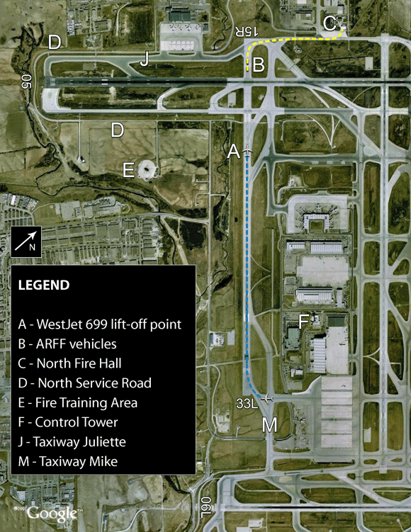 - Believing Runway 33L to be under the control of the north ground position, the north ground controller cleared the aircraft rescue and firefighting (ARFF) vehicles onto that runway, leading to a conflict with the departing WestJet 699.