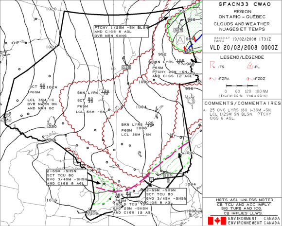 The weather at CYHM was reported to be visual meteorological conditions (VMC) with a forecast possibility of reduced visibility in snow just before the planned arrival time of 2330 (see Appendix A — Hamilton Weather).
