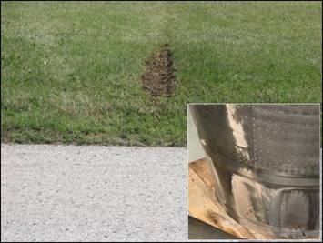 After the occurrence, airport personnel inspected Runway 06. They found a 12-foot-long ground scar in the turf off the end of the runway, starting approximately 44 inches from the hard surface and parallel to the Runway heading. The scar was up to 9 inches wide and 2 inches deep (see Photo 2), and was caused by the number 2 engine thrust reverser actuator fairing and tailpipe.