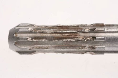 The left engine and its components were torn down, inspected, and tested with a TSB investigator present. The only significant anomaly found was that the high-pressure, engine-driven fuel pump drive splines were worn and corroded beyond the point of failure (see Photo 4 and Photo 5). Without fuel being supplied from the high-pressure fuel pump to the fuel control unit, the engine will shut down immediately.