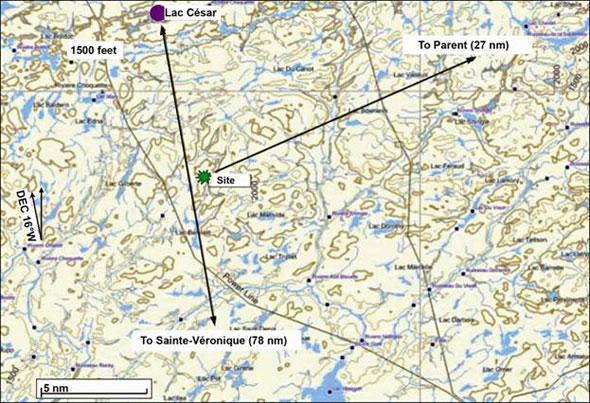 At approximately 1030 eastern daylight time (EDT)Footnote 1 on the day of the accident, the aircraft departed the Lac César base for Sainte-Véronique, Quebec, some 78 nautical miles (nm) to the south, with the pilot and two passengers on board. This flight lasted 55 minutes and was without incident. The weather was suitable for visual flight rules (VFR) flight. As indicated in the company operations manual with regard to flight watch, the pilot called the Lac César base upon arrival at Sainte-Véronique. The pilot had no operational obligation to return to the Lac César base by a specific time. The return flight would generate no revenue.