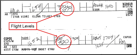 At the time WJA618 was given clearance to descend, WJA618's flight data strip was located above that of C-GPOS on the data board. The flight level that the controller had written on WJA618's flight progress strip was FL 330. C-GPOS' strip had FL 320 written on it (see Figure 1). WJA618 was given a clearance to descend to FL 320, with further descent to be expected in six minutes. WJA618 read back the descent clearance to FL 320, which the controller acknowledged.