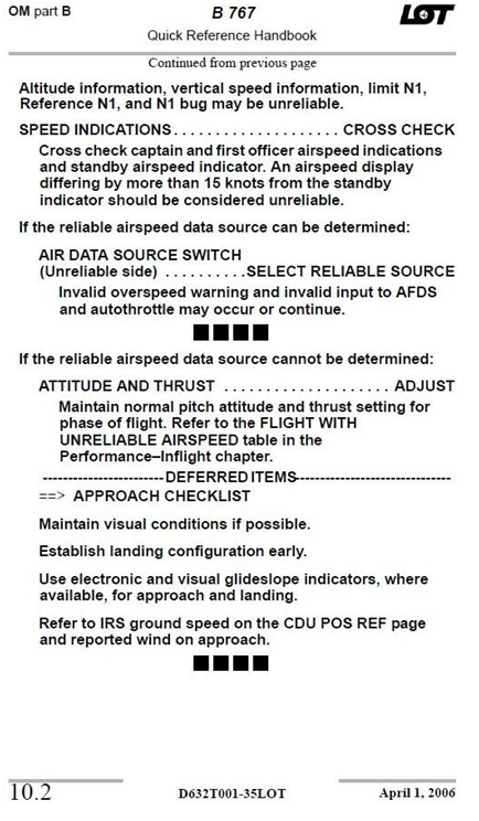 - The LOT Polish Airlines FCOM incorrectly states that the IAS DISAGREE and ALT DISAGREE EICAS messages will not be displayed on the occurrence aircraft during an unreliable airspeed incident. This increases the risk of a crew misidentifying a problem.