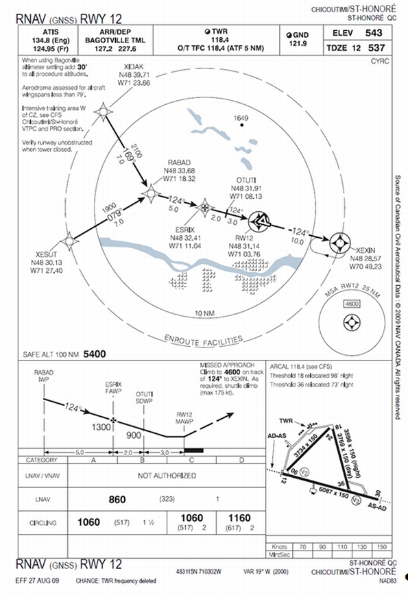 - The depiction of the RNAV (GNSS) Runway 12 approach published in the Canada Air Pilot (CAP) does not incorporate recognized visual elements for reducing ALAs, as recommended in Annex 4 to the Convention, thereby reducing awareness of the terrain.