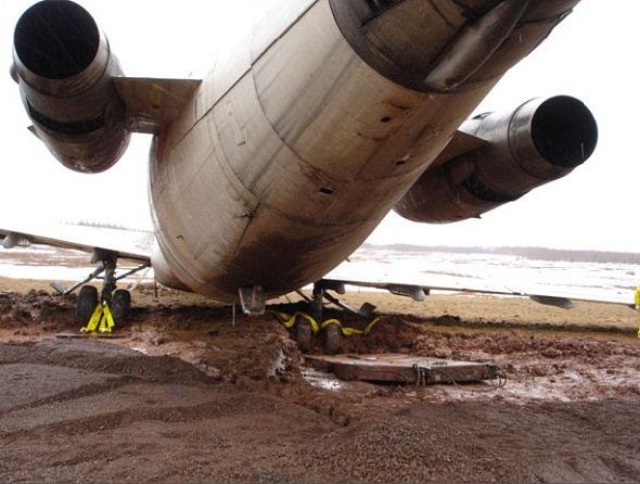 - The combination of delayed touchdown point, higher than required touchdown speed, and standing water on the runway prevented the aircraft from stopping within the available landing distance. As a result, the aircraft overran the runway, coming to rest in deep mud.