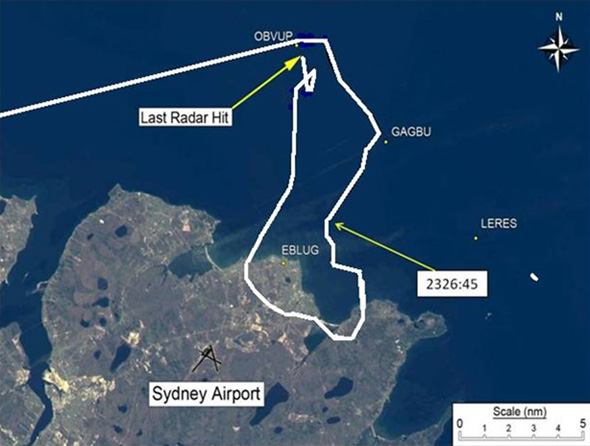 The aircraft was observed on radar proceeding direct toward OBVUP, then making a 360 degree right turn in about 20 seconds, with radar returns at 4000, 2600 and 1900 feet asl before it was lost off radar. The radar track and the descent rate of the aircraft are indicative of a spiral dive.