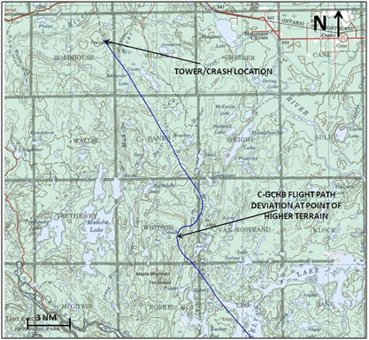 Furthermore, the NAV CANADA database has no data to suggest that a fire tower or any other obstacle existed at that location. According to NAV CANADA there have been no obstructions/towers change requests since the transition from NRCAN. The tower was not mentioned in any NOTAM on the day of the occurrence nor was it in the VFR chart updating section of the Canada Flight Supplement (CFS).