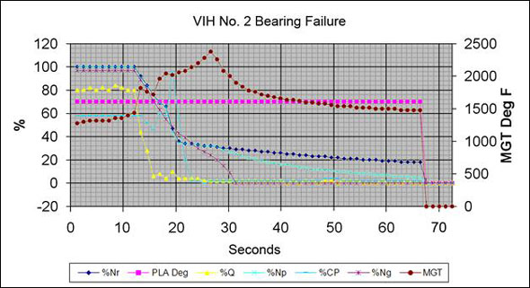 When the No. 2 bearing failed, the compressor rotor moved forward until it contacted the shroud, causing the surge (compressor stall), engine spool down, and power loss. Because the loss of power occurred when the helicopter was on final approach to the landing area, at low airspeed and low height above uneven ground, it resulted in a hard landing.