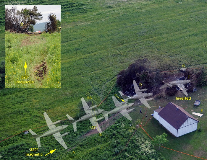 - The aircraft's upside-down position and the damage it sustained prevented the occupants from evacuating, causing them to succumb to the smoke and the rapid, intense fire.