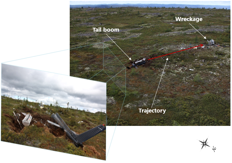 At 1201:5, the helicopter reached the southeast edge of the plateau, where the ground quickly descends towards the Moisie River valley. The helicopter began climbing, levelling off at about 300 feet above the plateau while turning left; less than 4 seconds later it struck the ground at a steep angle, in a northwest direction (Figure 3). The accident occurred at 1201:37.