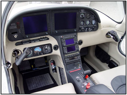 C-FGLA was equipped with an Avidyne Entegra instrumentation system, consisting of flat panel liquid-crystal displays integrating all flight instruments and navigation systems. The primary flight display (PFD) was situated in front of the left pilot position, with a multi-function display (MFD) to the right. The PFD included airspeed and altitude tapes, vertical speed, horizontal situation indicator, attitude indicator, and compass information. Engine parameters were displayed digitally on the MFD along with navigation information.